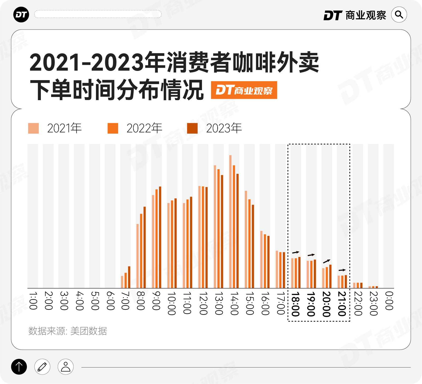 根据美团数据,2023年咖啡外卖的下单时间,覆盖了早上7点到晚上11点,并且2021至2023年间,晚上6点至9点的咖啡订单出现了增长,夜间喝咖啡的趋势日益明显。
