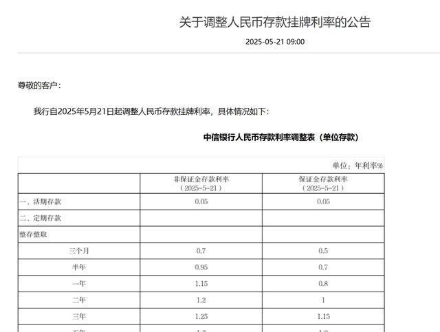 5月21日,平安、中信、兴业、浦发、民生、广发、华夏七家股份制银行也跟进了。公告上写得很清楚,人民币存款挂牌利率下调,从5到25个基点不等。连活期利率都只剩下0.05%,接近“0利率”。